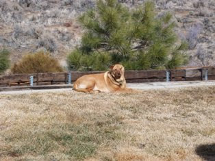 Ruby was the official greeter at the ranch. She ran loose up by the ranch house with Buffy. You may have noticed that she’s missing an ear. Her mother chewed it off when she was a puppy. Gabbs dogs do strange things. Ruby was in the first group of Gabbs dogs that was brought out to the Yerington Animal Shelter. She waited for over a year for her forever home. Then, a few days after Christmas, she was adopted.